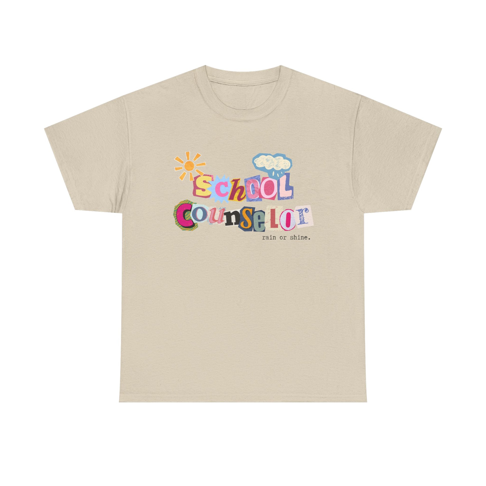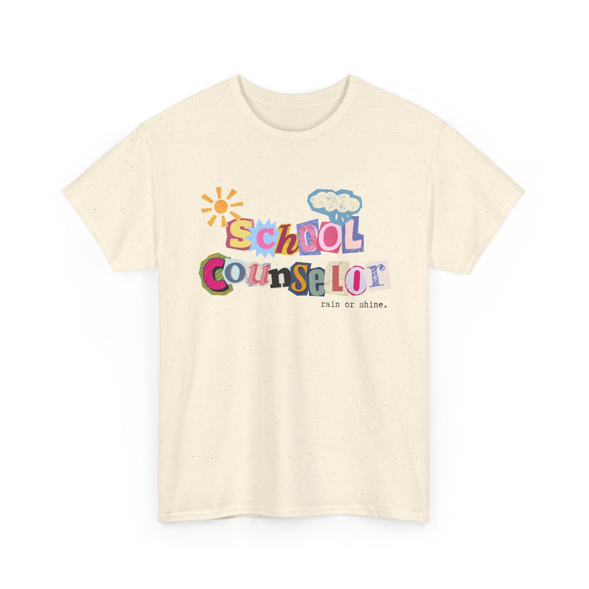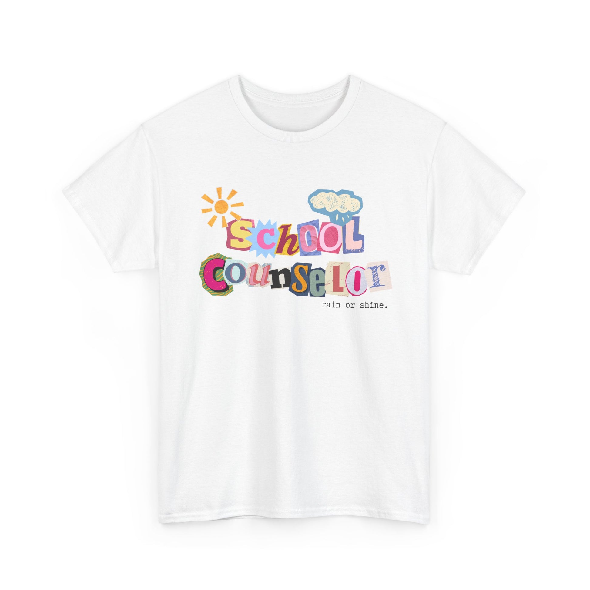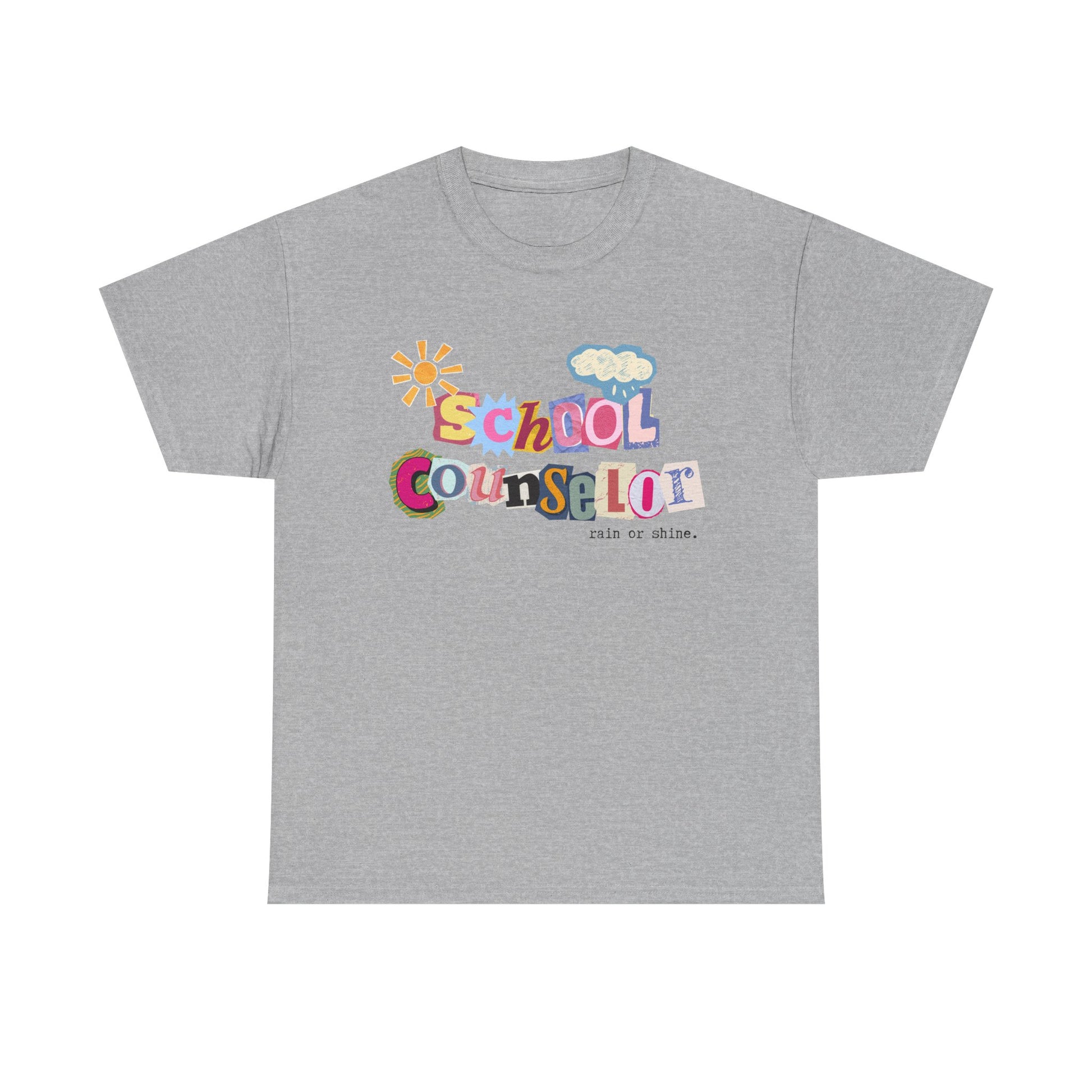 This unisex t-shirt celebrates the dedication of school counselors with a thoughtful typographic design. The "Rain or Shine" message captures the unwavering commitment counselors bring to supporting students through every challenge. Crafted from quality fabric, it offers comfort for everyday wear while making a meaningful statement about the vital role counselors play in education. Perfect for counselors themselves or as a gift to honor their impact.