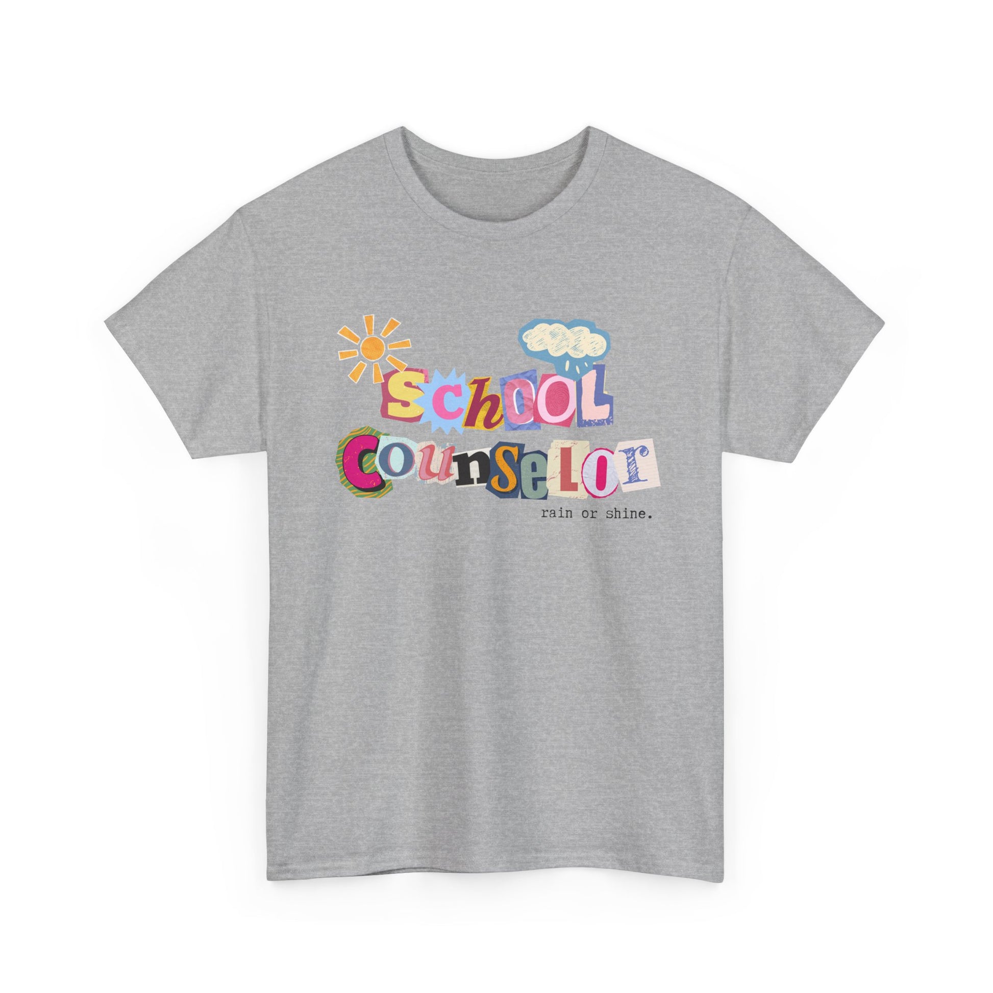 Typography School Counselor "Rain or Shine" Unisex T-Shirt